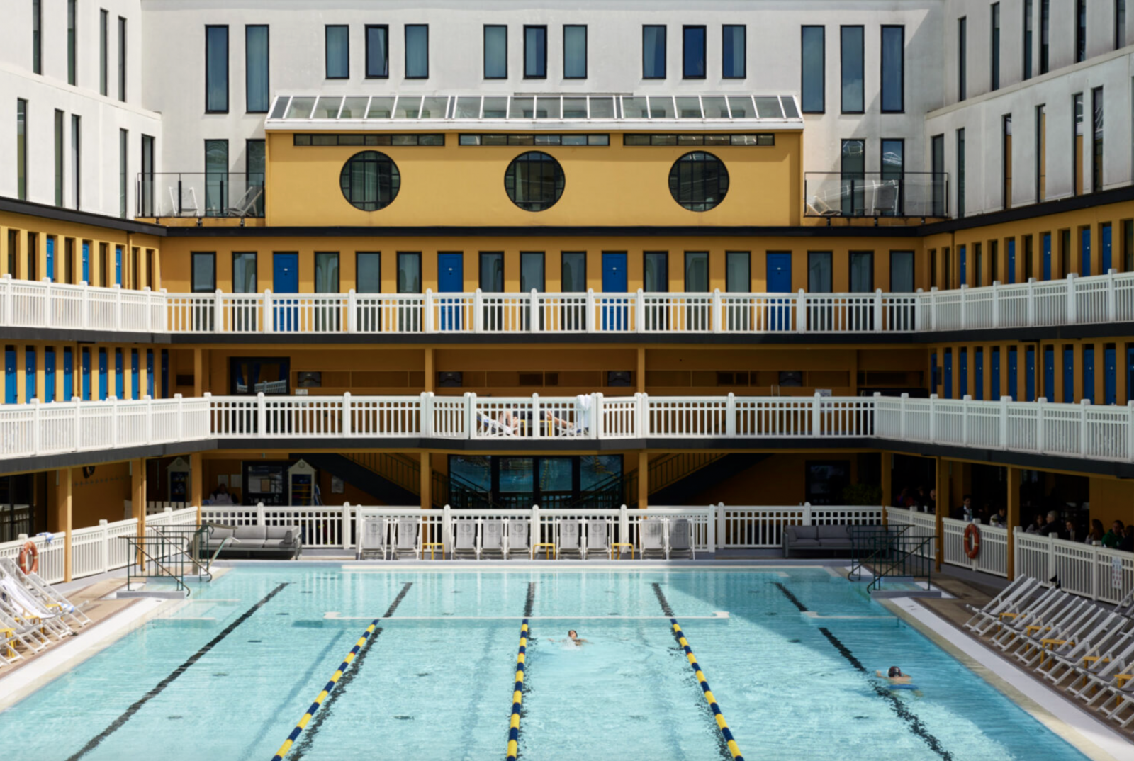 Le majestueux bassin intérieur du Molitor, baigné de lumière sous sa verrière Art Déco.